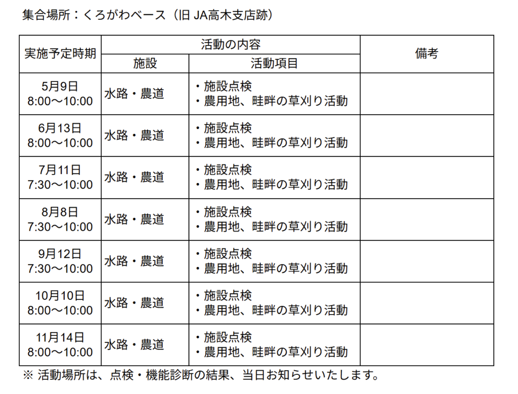 令和8年度の草刈り共同作業の日時は、5月~11月 第二土曜日の実施となりました。